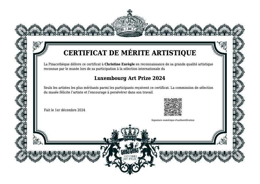 Certificat de mérite artistique du Luxembourg Art Prize 2024